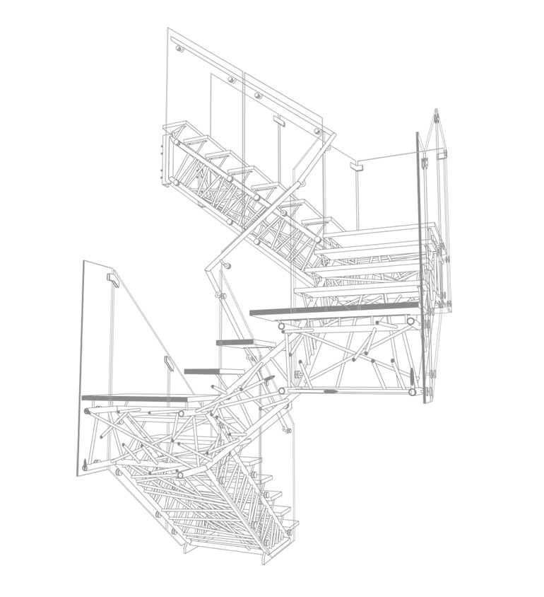 This project is the home of two art collectors on New York’s Upper West Side. Built in collarboration with our architecture office,the design merges two apartments to create a spacious domestic art gallery where home and art are intertwined. The spaces are strung in an open sequence around a library core, from the entrance to the kitchen with the feature stair winding up to the 2nd floor and roof terrace above. Other metalwork included translucent moveable partitions and the kitchen island.